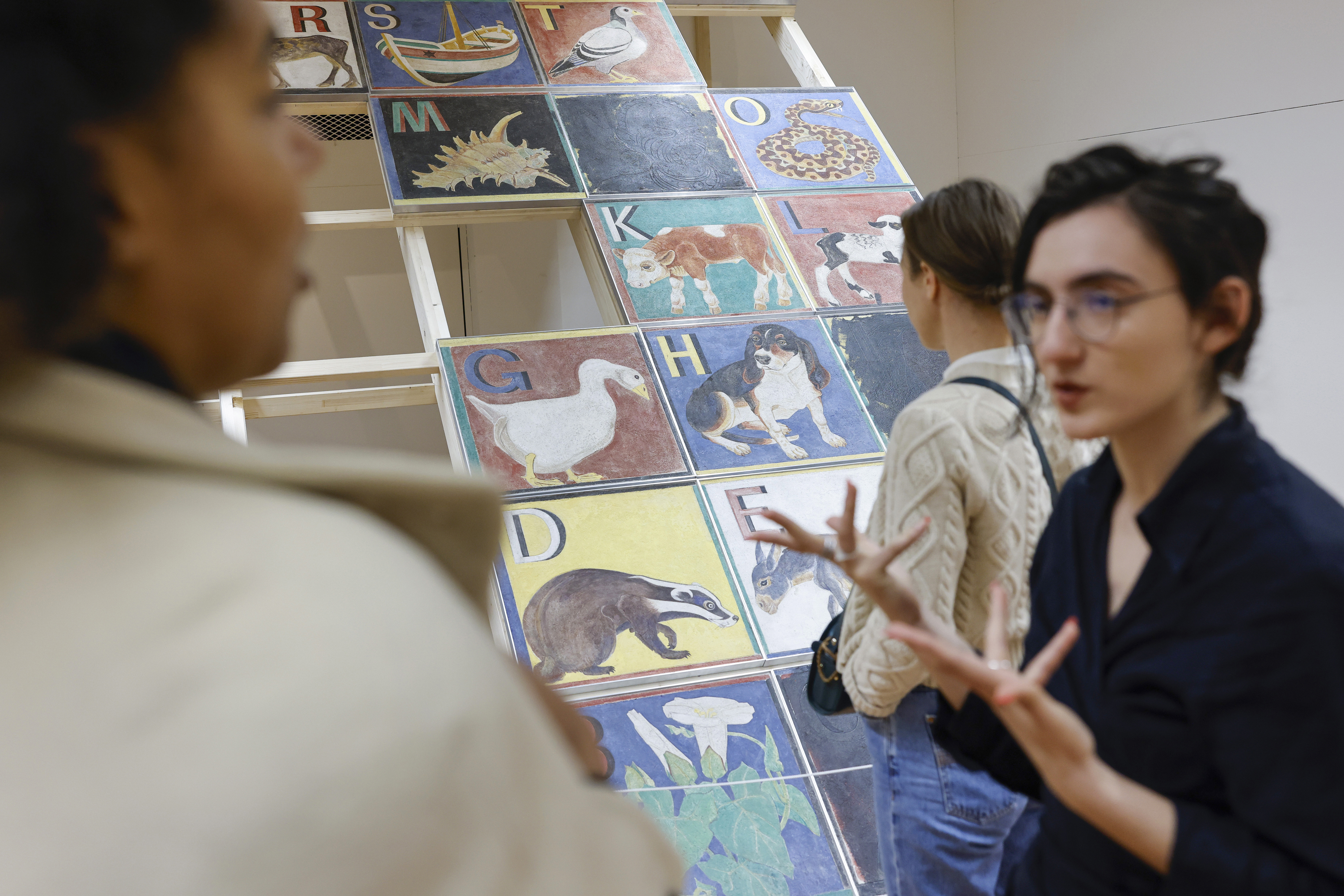 Ausstellungsansichten Wandbild ohne Titel [Illustriertes Wandalphabet], 1949 von Emil Zbinden und Eugen Jordi (Foto: Stefan Wermuth)